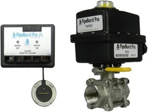 Consider your search for a reliable, hard-wired, water leak detection system over! Comprised of the highest quality components ensuring long lasting reliability, the PipeBurst Pro Jr. system is what you need. Complete with an electronic shut-off ball valve (choose between 1, 1 ยฝ, and 2 valves for your application), water sensor and a VIP panel, this kit has everything you need to stop leaks and floods from causing extensive damage! When the sensor detects a leak the VIP will immediately shut off the water supply through the valve, preventing the leak from spreading! Take advantage of the built-in handle that the shut-off valve presents for manual open and close regulation. Extended features provide you with the control you deserve!