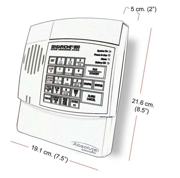 Including phone line monitoring that ensure the connection is not failing and a 24-hour battery backup, the Sensaphone 800 has you covered 24/7. The FGD-800ย also has built-in LED lights on the front panel indicating backup battery conditions and alarm/phone status.